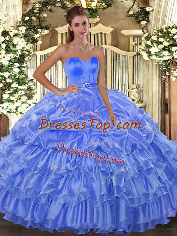Popular Organza Sweetheart Sleeveless Lace Up Beading and Ruffled Layers 15 Quinceanera Dress in Baby Blue