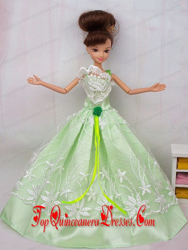 Popular Princess Apple Green Lace and hand Made Flower Party Dress For Barbie Doll