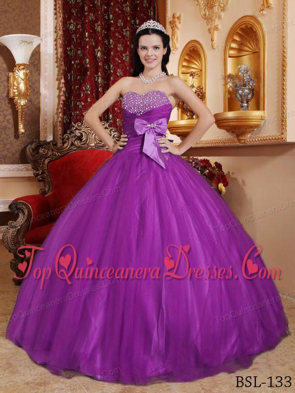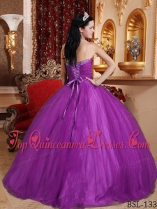Popular Purple Ball Gown Sweetheart Floor-length Tulle and Tafftea Beading Quinceanera Dress