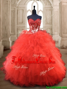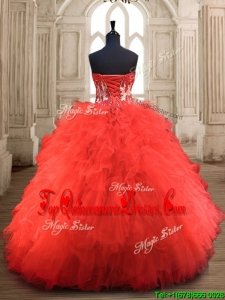 Popular Red Really Puffy Quinceanera Gown with Appliques and Ruffles