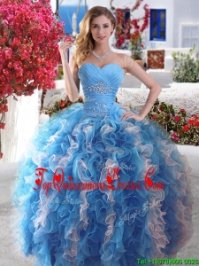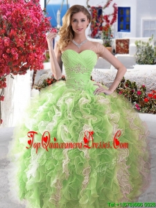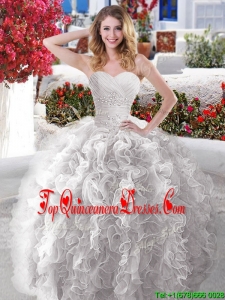 Popular Rose Pink and White Quinceanera Dress with Beading and Ruffles
