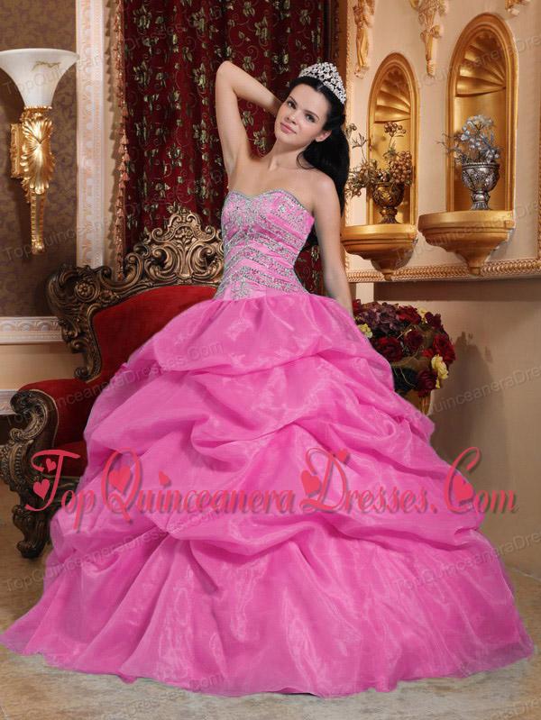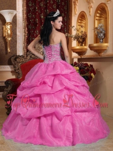 Popular Rose Pink Ball Gown Sweetheart Floor-length Organza Beading Quinceanera Dress