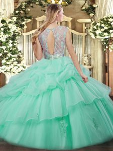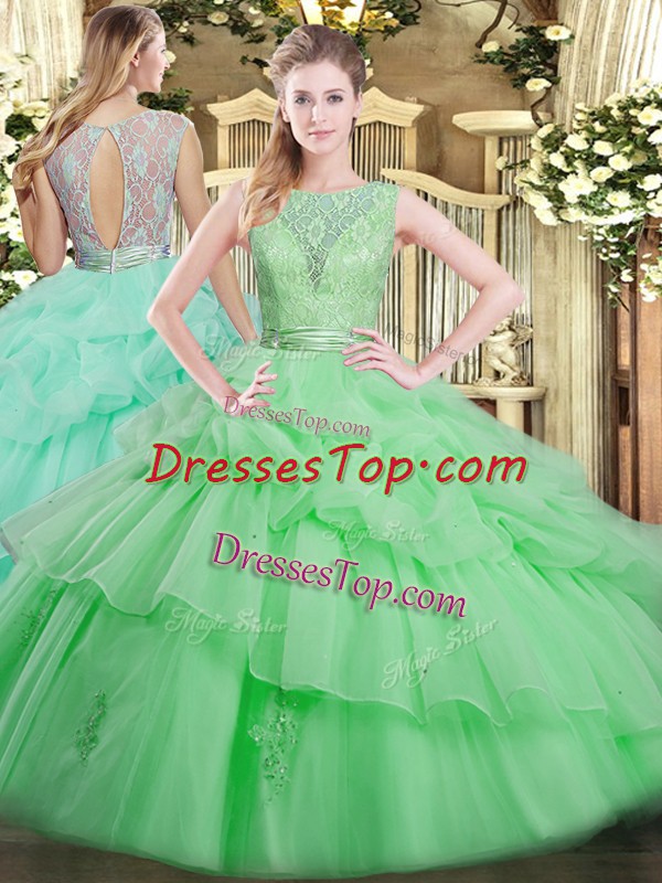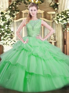 Popular Scoop Sleeveless Backless Sweet 16 Dress Apple Green Tulle
