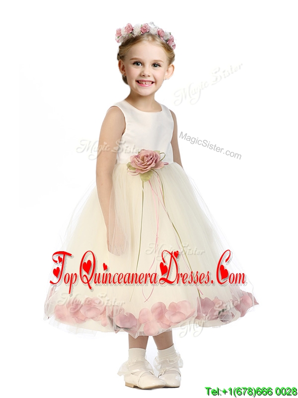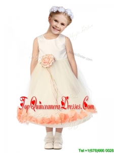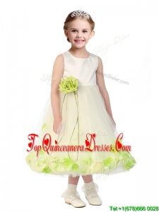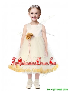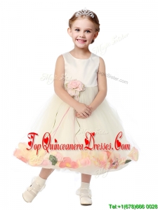 Popular Scoop Tulle New Arrival Kid Pageant Dresses with Hand Made Flowers and Appliques