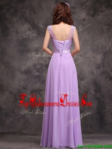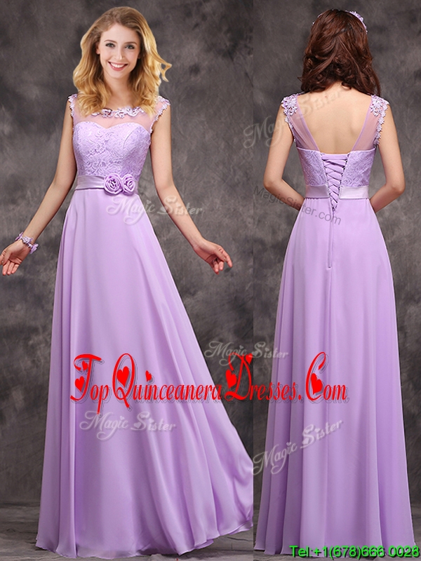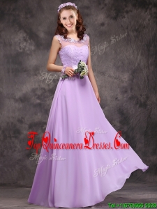Popular See Through Applique and Laced Quinceanera Dama Dress in Lavender