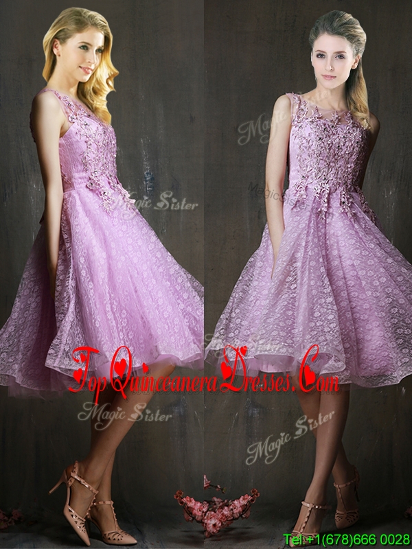 Popular See Through Beaded and Applique Damas Dress in Lavender