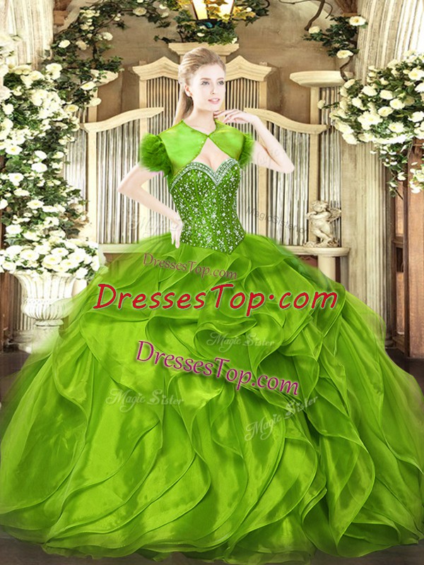 Popular Sleeveless Organza Floor Length Lace Up 15 Quinceanera Dress in with Beading and Ruffles