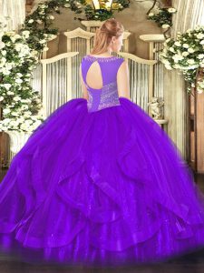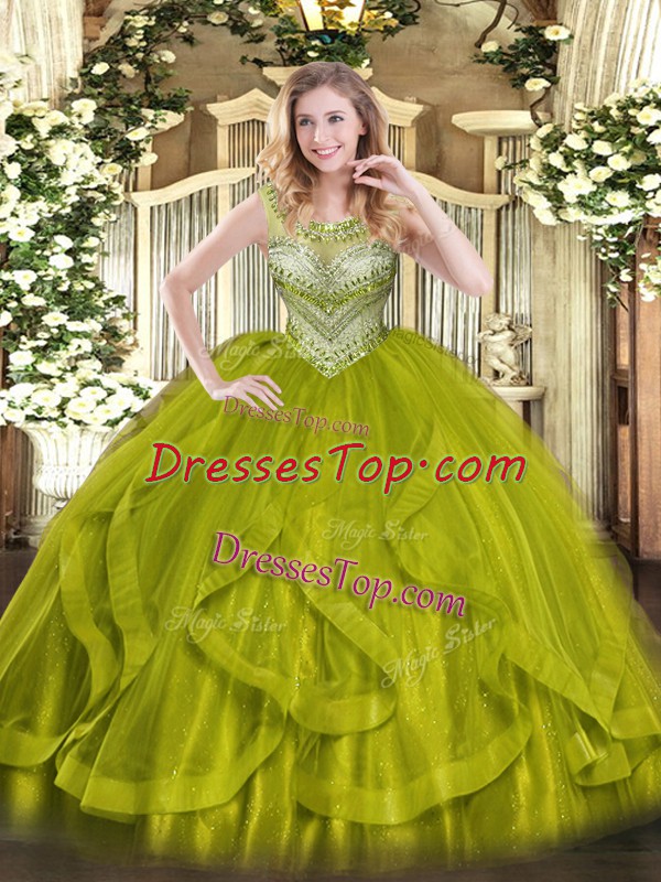 Popular Sleeveless Tulle Floor Length Lace Up Sweet 16 Dress in Olive Green with Beading