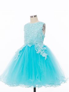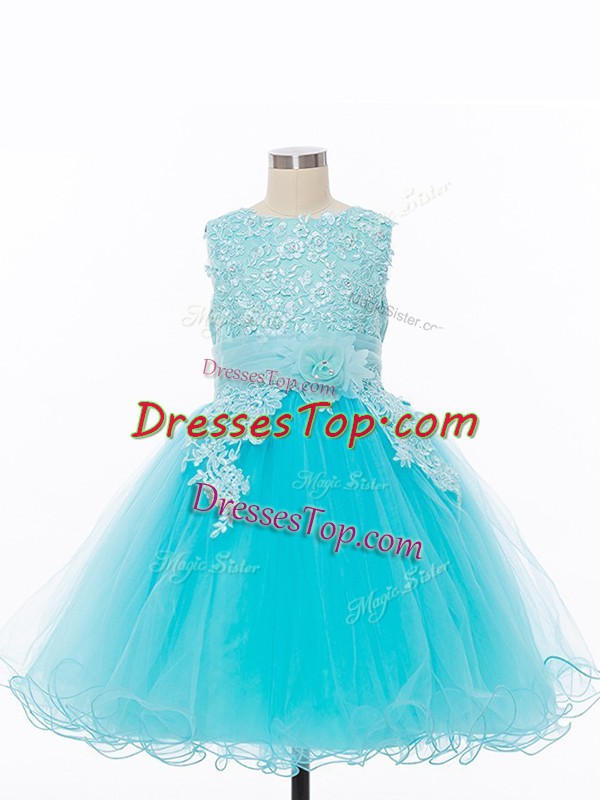 Popular Sleeveless Zipper Knee Length Appliques and Hand Made Flower Pageant Dress for Teens