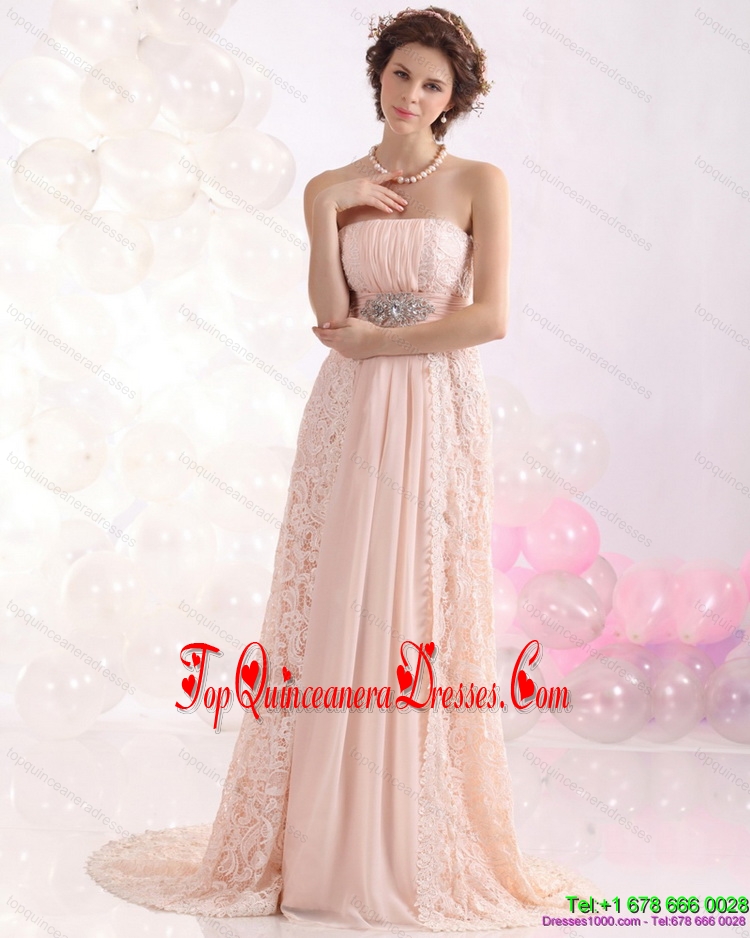 Popular Strapless Sequins and Lace Gorgeous Dama Dress with Brush Train
