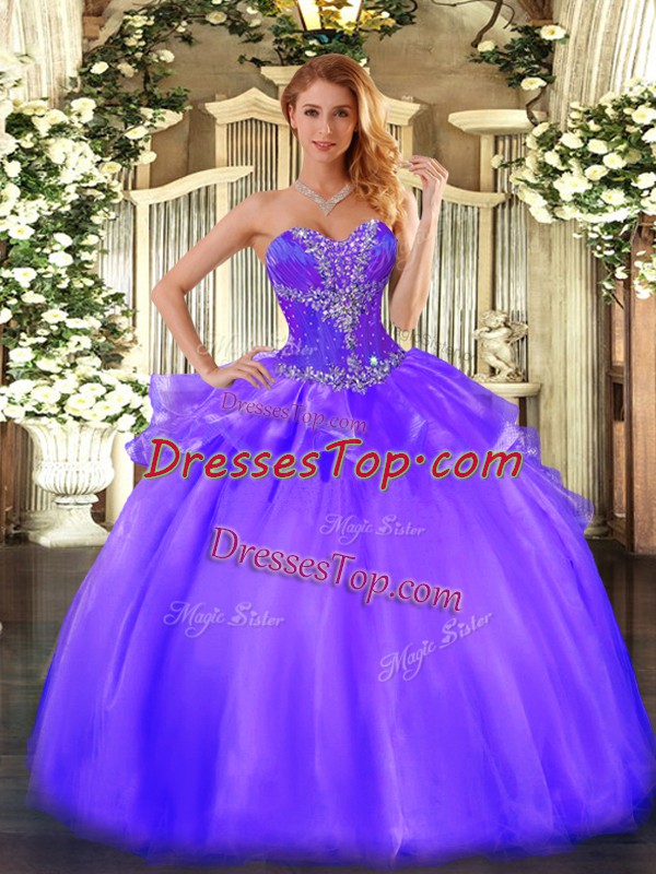 Popular Sweetheart Sleeveless Lace Up Quince Ball Gowns Purple Tulle