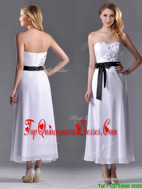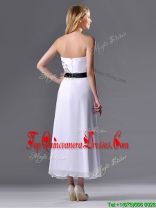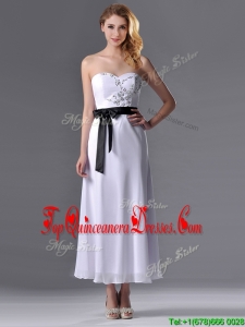 Popular Tea Length White Dama Dress with Appliques and Belt