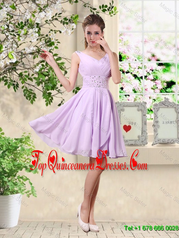 Popular V Neck Lavender Dama Dresses with Beading