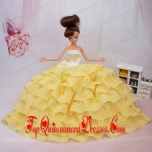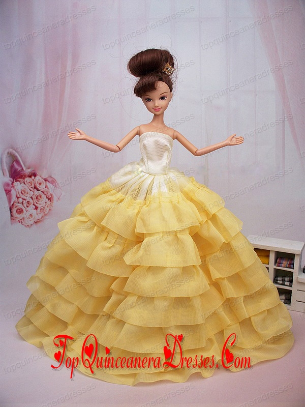 Popular Yellow Floor-length Party Clothes Fashion Dress For Noble Barbie