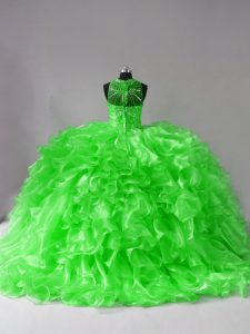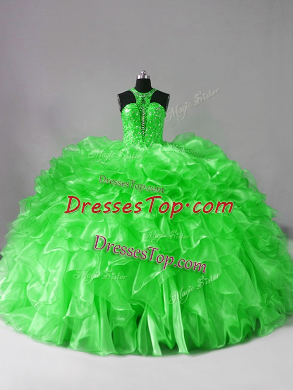 Pretty 15th Birthday Dress Sweet 16 and Quinceanera with Beading and Ruffles Halter Top Sleeveless Brush Train Lace Up