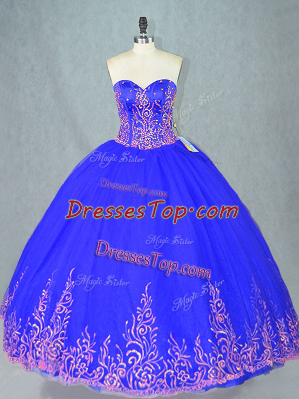 Pretty Ball Gowns Ball Gown Prom Dress Blue Sweetheart Tulle Sleeveless Floor Length Lace Up