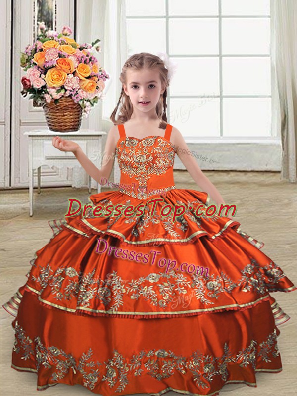Pretty Ball Gowns Child Pageant Dress Rust Red Straps Satin Sleeveless Floor Length Lace Up