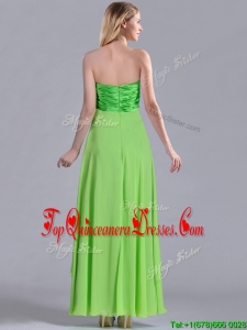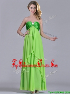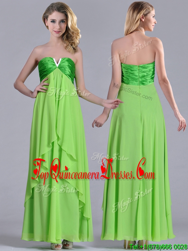 Pretty Beaded Decorated V Neck Spring Green Dama Dress in Ankle Length