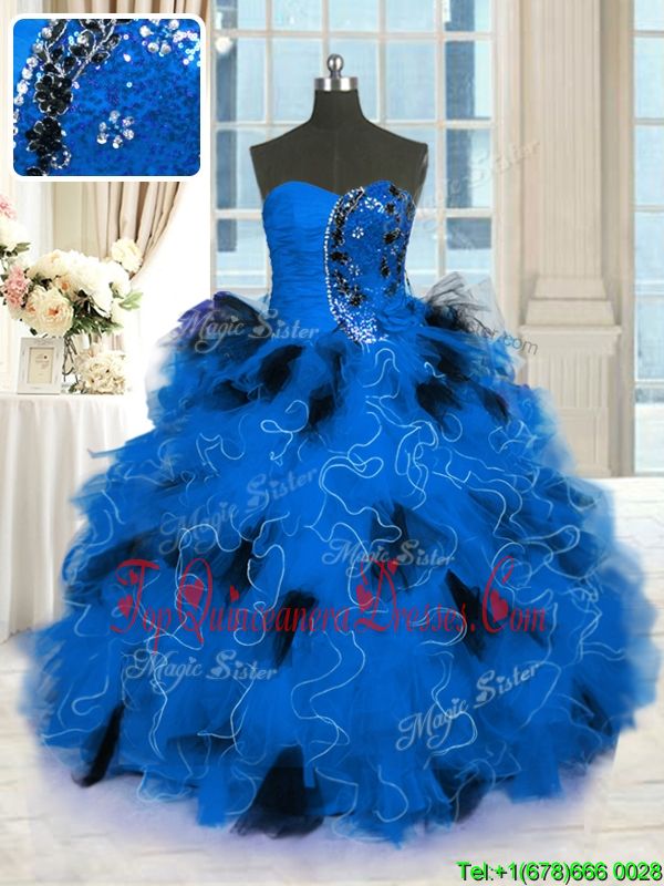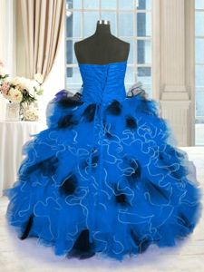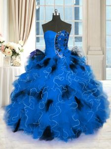 Pretty Blue Tulle Lace Up Strapless Sleeveless Floor Length Quinceanera Dresses Beading and Ruffles