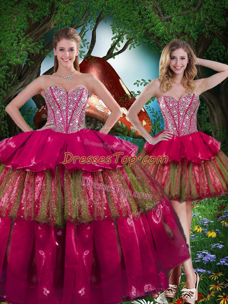 Pretty Burgundy Sleeveless Floor Length Beading and Ruffled Layers Lace Up Quinceanera Gown