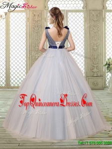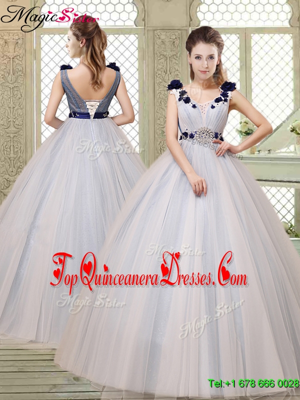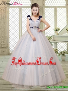 Pretty Champagne Straps Quinceanera Gowns with Belt and Appliques
