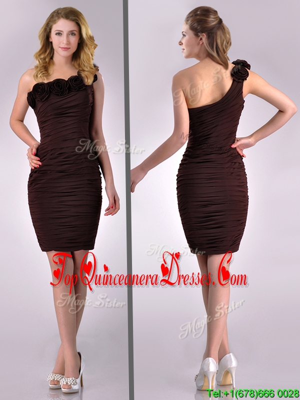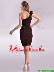 Pretty Column One Shoulder Watteau Train Chiffon Coral Red Dama Dress with Beaded