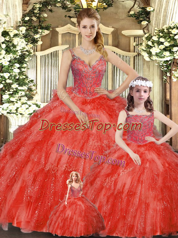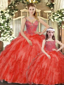 Pretty Floor Length Ball Gowns Sleeveless Red Sweet 16 Dresses Lace Up