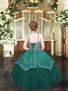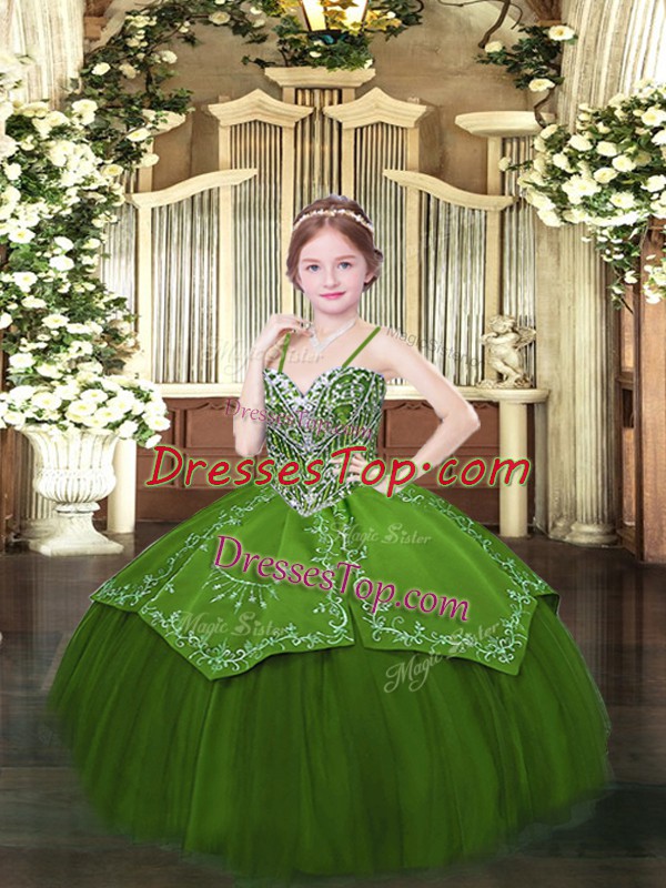 Pretty Floor Length Olive Green Pageant Dress Satin and Organza Sleeveless Beading and Embroidery