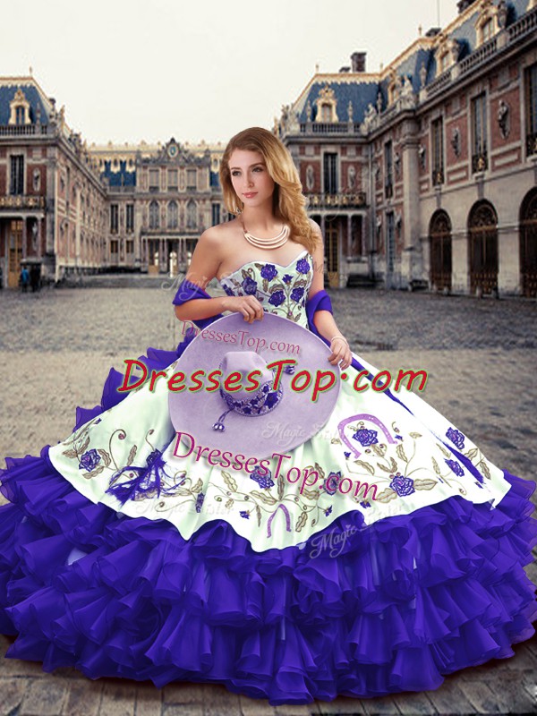 Pretty Floor Length Purple Sweet 16 Quinceanera Dress Organza Sleeveless Embroidery and Ruffled Layers