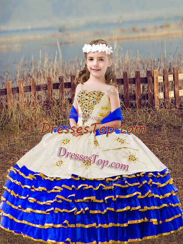 Pretty Floor Length Royal Blue Little Girls Pageant Dress Straps Sleeveless Lace Up