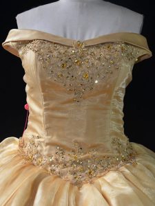 Pretty Gold Sleeveless Beading and Pick Ups Floor Length Ball Gown Prom Dress