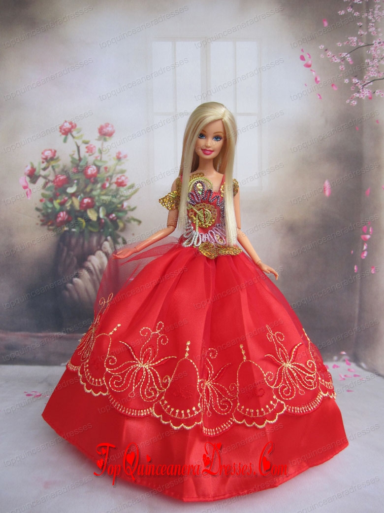 Pretty Gown With Red Applqiues StrapsMade to Fit the Barbie Doll