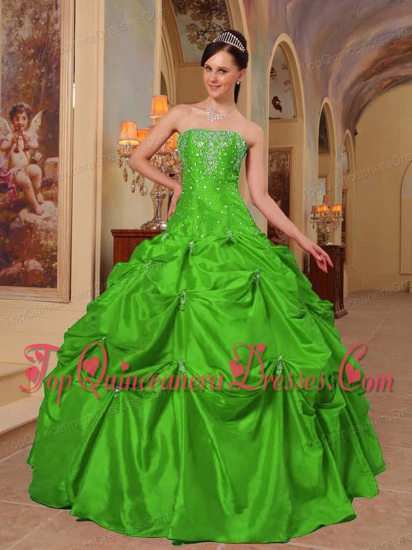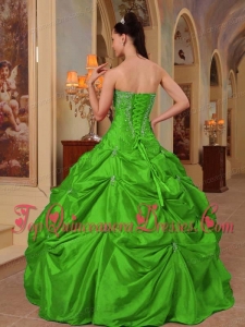 Pretty Green Ball Gown Strapless Floor-length Taffeta Beading and Embroidery Quinceanera Dress