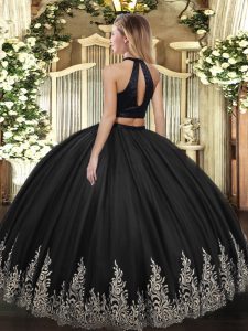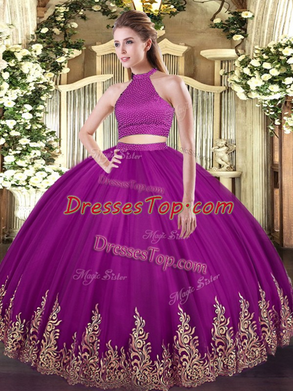 Pretty Halter Top Sleeveless Sweet 16 Dresses Floor Length Beading and Appliques Fuchsia Tulle