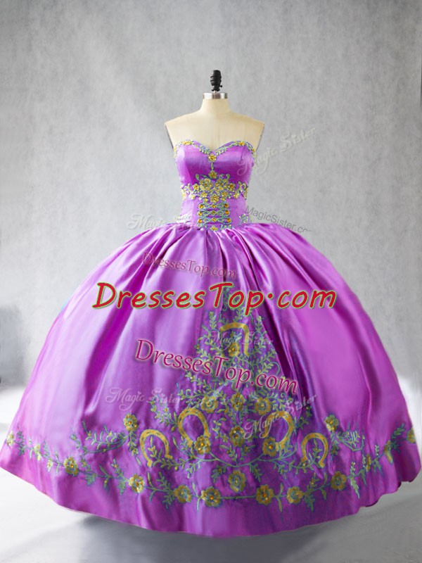 Pretty Lace Up 15th Birthday Dress Lilac for Sweet 16 and Quinceanera with Embroidery