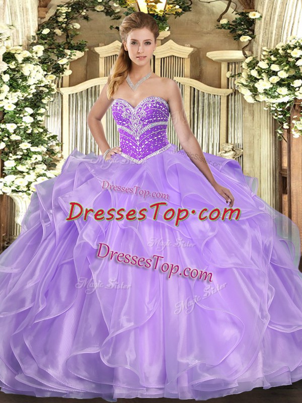 Pretty Lavender Ball Gowns Organza Sweetheart Sleeveless Beading and Ruffles Floor Length Lace Up Sweet 16 Quinceanera Dress