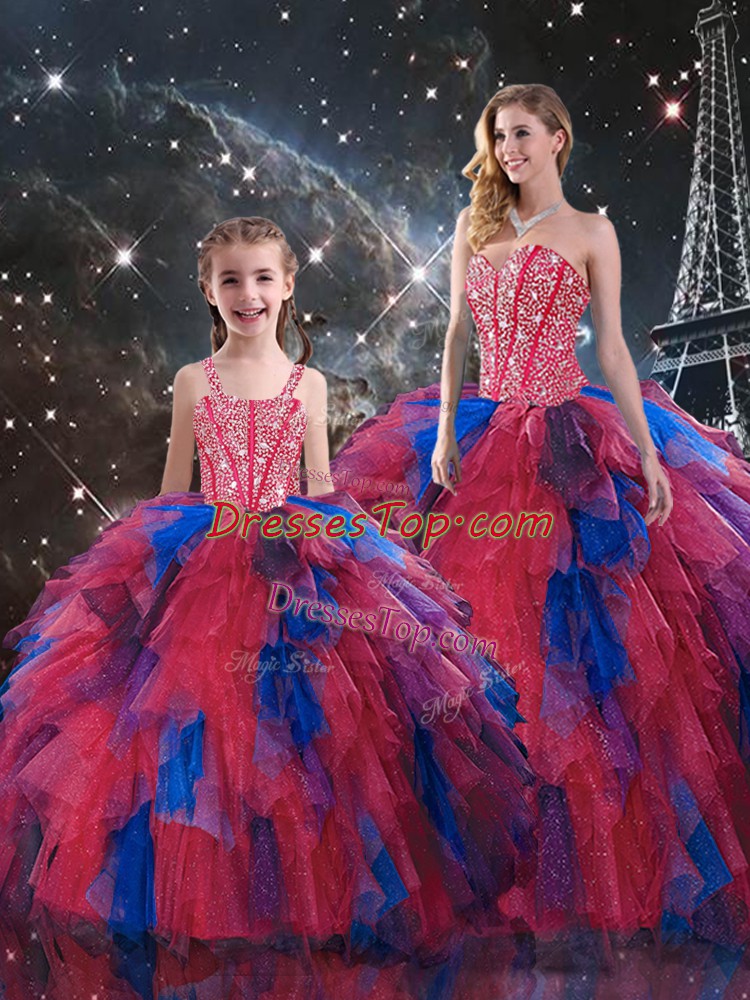 Pretty Multi-color Ball Gowns Tulle Sweetheart Sleeveless Beading and Ruffled Layers Lace Up Sweet 16 Dress