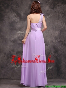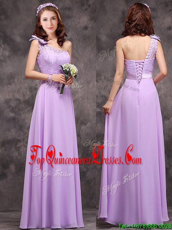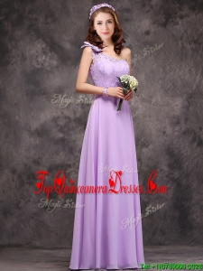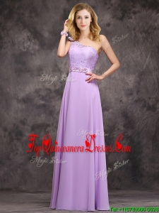 Pretty One Shoulder Lavender Quinceanera Dama Dress with Applique Decorated Waist
