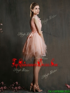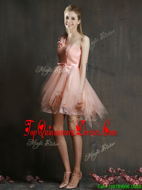 Pretty One Shoulder Watermelon Red Dama Dress with Belt and Hand Made Flowers