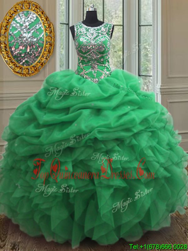 Pretty Pick Ups Scoop Sleeveless Lace Up Ball Gown Prom Dress Organza