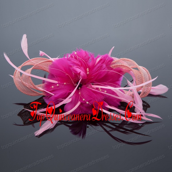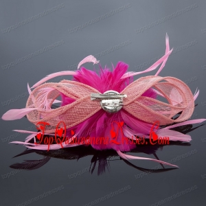 Pretty Pink Tulle Feather Flower Hairpin for Wedding