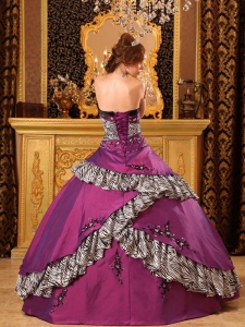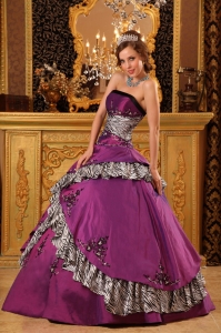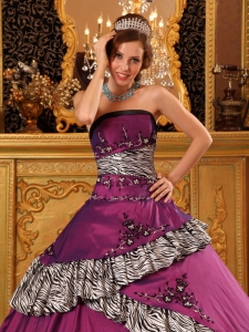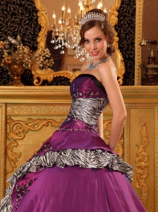 Pretty Purple Quinceanera Dress Strapless Zebra Print 2013