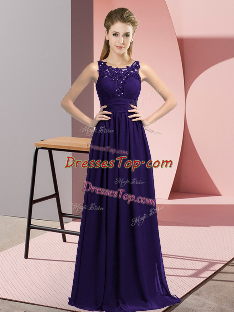 Pretty Purple Zipper Quinceanera Dama Dress Beading and Appliques Sleeveless Floor Length