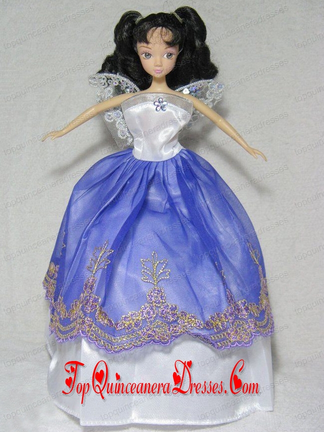 Pretty Royal Blue and White Gown For Barbie Doll