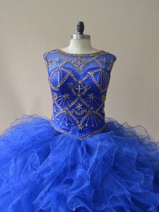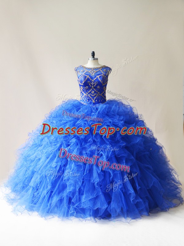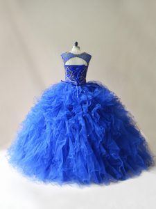 Pretty Royal Blue Sleeveless Tulle Lace Up Ball Gown Prom Dress for Sweet 16 and Quinceanera