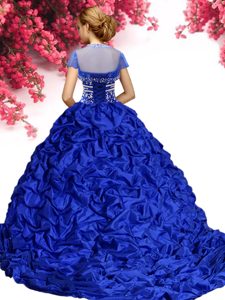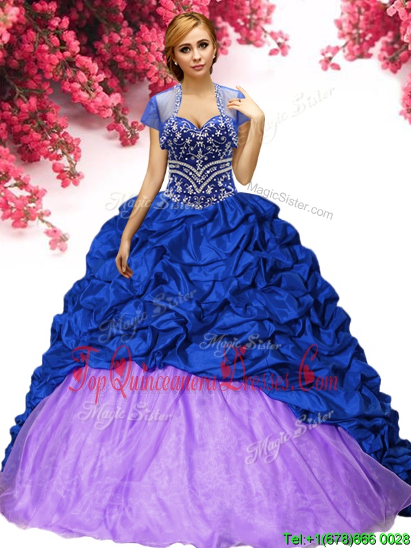 Pretty Royal Blue Sweetheart Lace Up Beading and Pick Ups Sweet 16 Dresses Brush Train Sleeveless