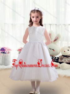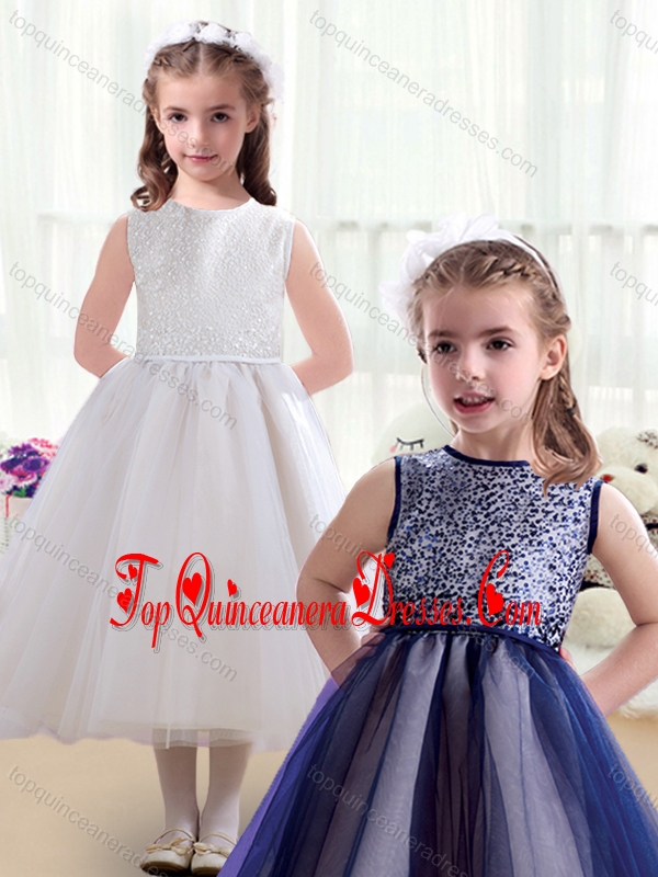 Pretty Ruching Tea Length Scoop New Arrival Kid Pageant Dresses