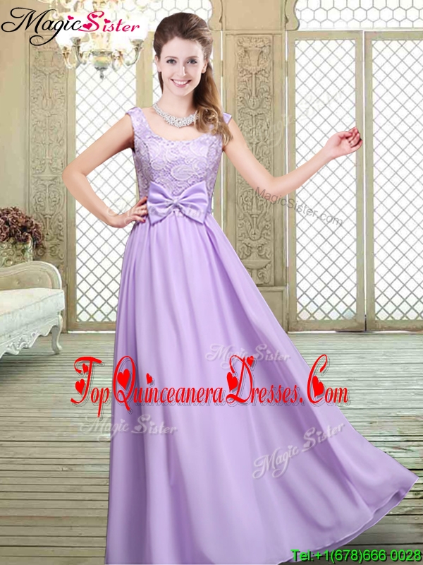 Pretty Scoop Bowknot Lavender Fashionable Damas Dresses for Fall