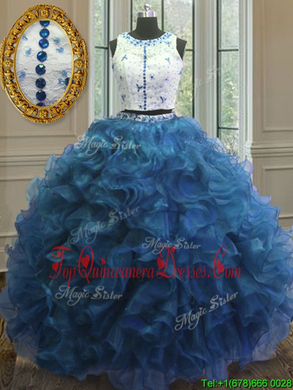 Gorgeous Scoop Clasp Handle Teal Sleeveless Beading and Ruffles Floor Length Quinceanera Dress