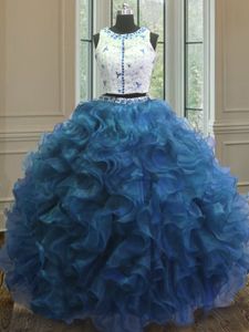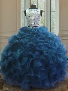 Pretty Scoop Sleeveless Organza 15 Quinceanera Dress Beading and Lace and Ruffles Clasp Handle